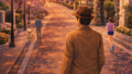 The tension of the business district fades, replaced by open air and space.